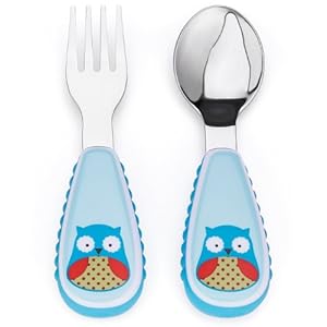Signature Skip Hop zoo characters Perfect chunky size for growing toddlers Stainless-steel heads Soft sides for easy grips Dish